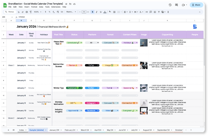 2025 Social Media Planner Calendar in Google Sheets [FREE Template